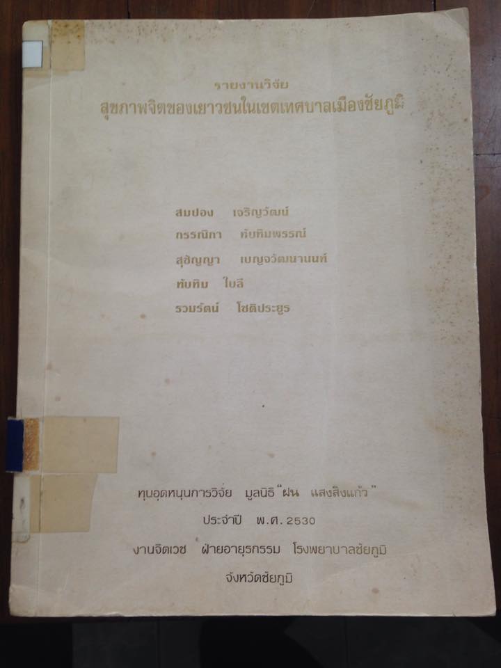สถาบันวิจัย งานจิตเวช ฝ่ายอายุรกรรม โรงพยาบาลชัยภูมิ
